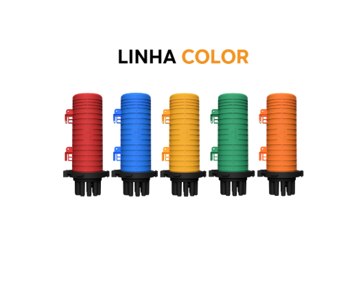 Caixa de alta capacidade, usada em troncos ou subtroncos da rede principal para proteger as emendas de cabos ópticos, suportando um grande volume de fusões.